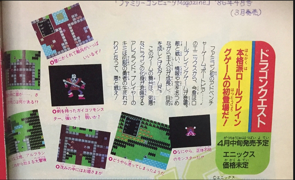 2.《Fami 通》杂志 1986年的第3期,刊登了首次的《勇者斗恶龙》开发阶段的情报。