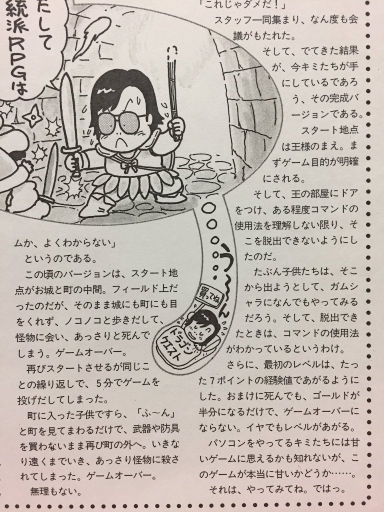 4.在《勇者斗恶龙1》的开发过程中,早期版本中如果玩家在战斗中失败,游戏会直接结束。不过,开发团队后来根据测试结果进行了调整,最终确定了现在的规则:如果玩家在战斗中失败,角色会复活,但金币会减半。(《月刊 LOGIN》1986 年 7月号)