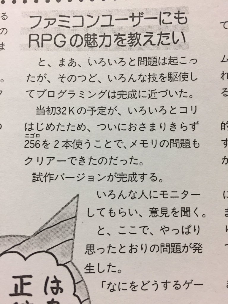 3.《勇者斗恶龙1》的ROM容量是512Kbit。然而,即便如此,这已经是最初计划的两倍了!(出自《月刊LOGIN》1986年7月号。)